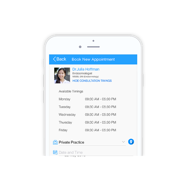 Patients can view your consultation timings and book appointments for clinic or online consultations without having to make phone calls. They also receive automated alerts about the status of their appointment requests.