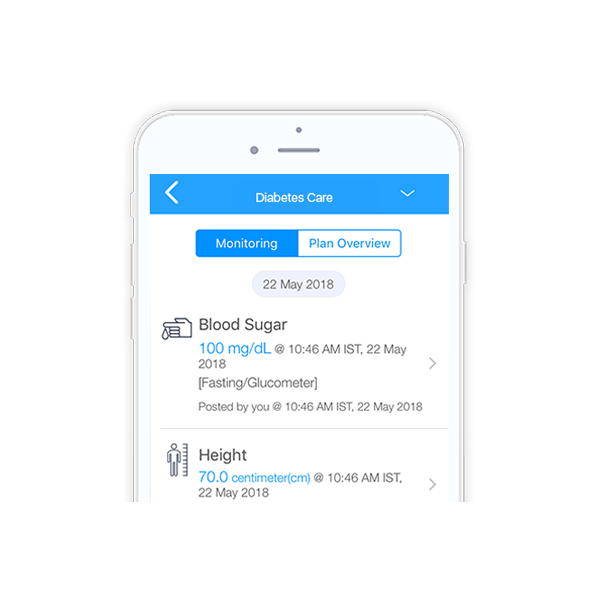 Patients susbcribed to your online Remote Monitoring care plans can update their health trackers and share these values with your practice periodically through the ContinuousCare mobile app. They can view and track their progress on your health plans on their mobile.