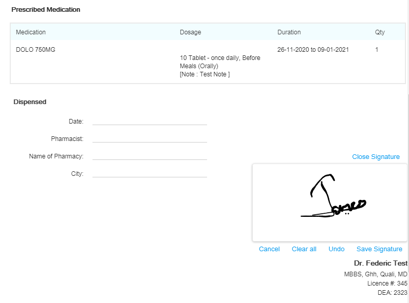 Generate your own electronic signature with real-time capture or upload an image of your digital signature to be embedded onto your prescriptions. Provides a comprehensive solution to process prescriptions exponentially faster, eliminating the need of printing or scanning them and also helps maintain authenticity.