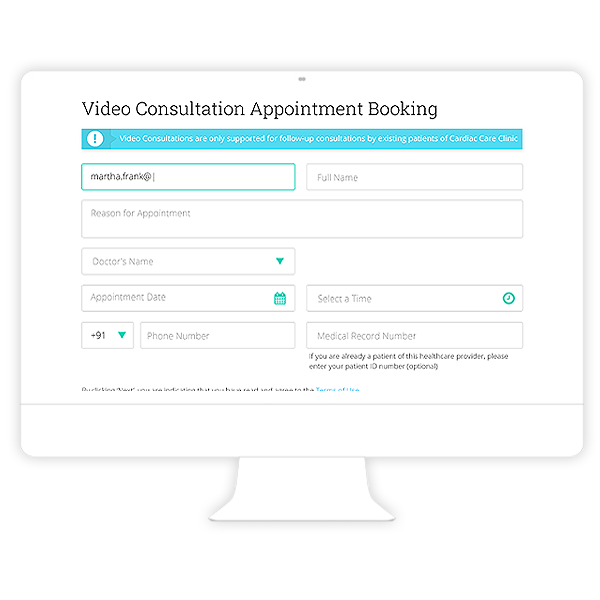 Your patients can book an appointment for Video Consultations and log in to the patient portal for their telemedicine session. Consultation summaries sent after a video session will also be available to them here.