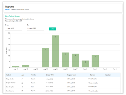 Collect data to keep track of patient signups and registration sources, through patient registration reports.