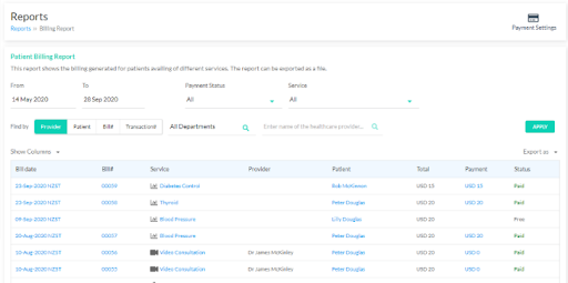View and export billing reports created for patient encounters and monitor revenue generated in your practice.