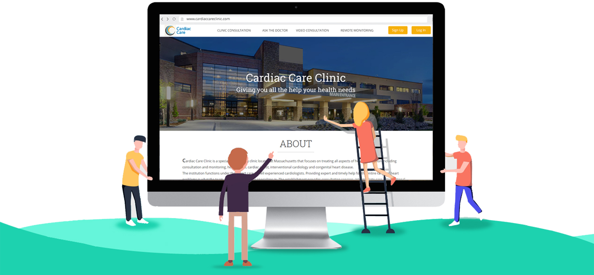 A website designed for medical practices/telemedicine businesses, that serves as a gateway to your web patient portal, where patients can book appointments, ask questions, view your remote monitoring plans or just register with your practice.