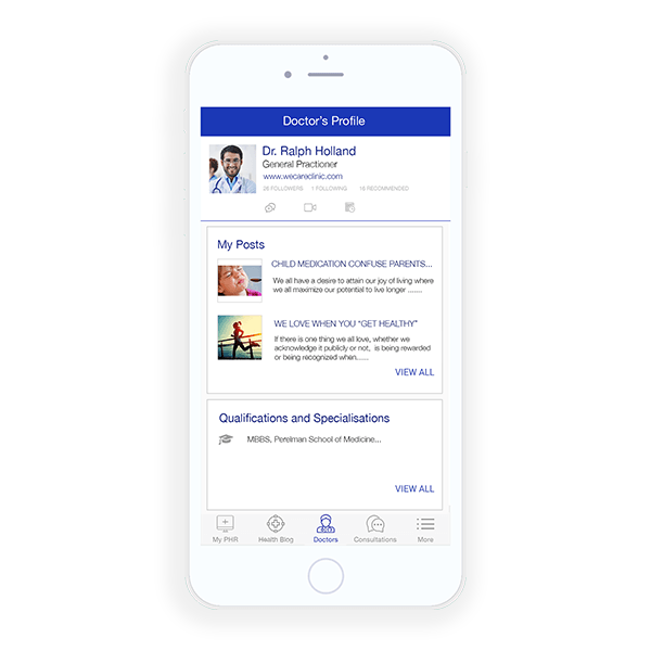 Patients have access to a comprehensive electronic health record which includes a Health Profile, Health Conditions, Medications,Allergies, Surgeries, Treatments, Procedures and Vaccinations. The application also supports 49+ health trackers related to Vital Signs, Blood, Electrolytes, Fitness and Well Being, Kidney, Lipid Profile, Liver, Lung, Skin, Symptoms and Thyroid. Enable the health-trackers that support your patient's requirements.