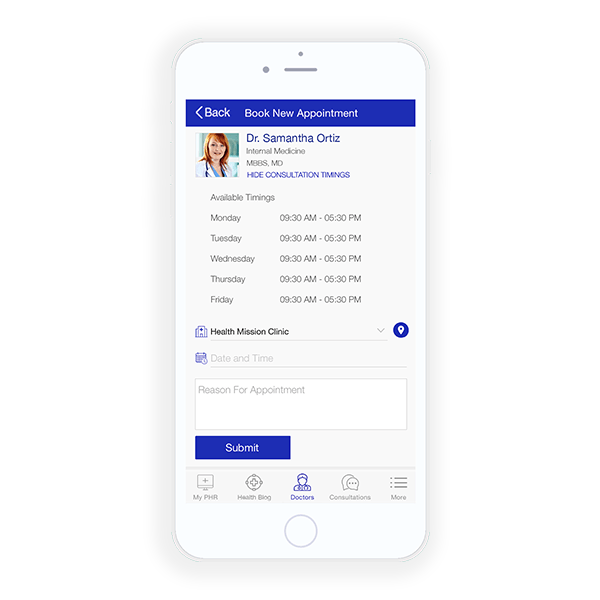 A full-fledged appointment booking feature with patient and provider notifications. Your patients also get automated reminders, which is a great time saver and helps reduce no-shows. Manage the appointments through the web based appointment scheduler or doctor mobile apps ( available for free download).